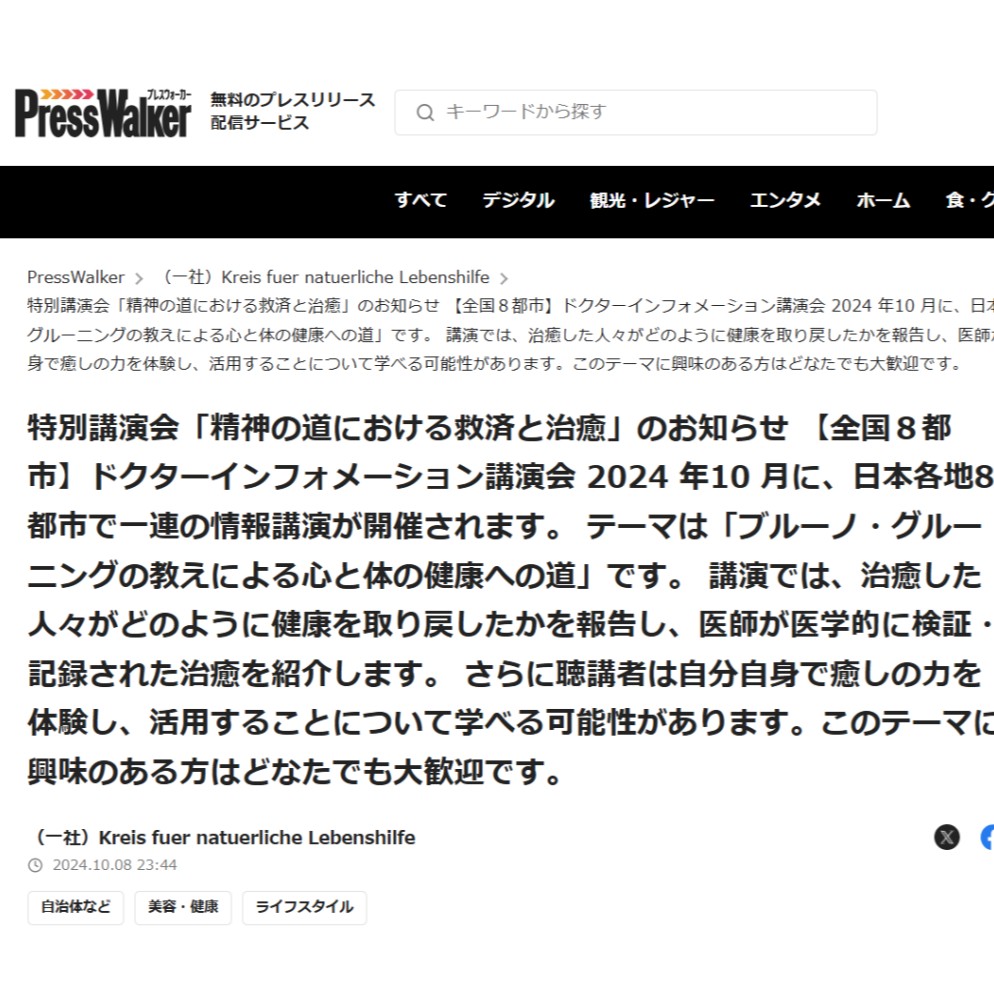PressWalkerの記事詳細はこちら https://presswalker.jp/press/57153 ドクターインフォメーション講演会 予告編 ※申込は概要欄から https://www.youtube.com/@BrunoGroeningOrgJA 🚀ウェルビーイング あみきんのニュースレター💫 https://www.streamfusionhub.com/contact-8 ※この放送はstand.fmのAIテキスト読み上げ機能で作成されています。