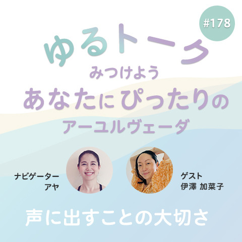 アーユルヴェーダの知恵に救われ続けているヨガインストラクターのアヤが、毎回ゲストをお招きし、健康や美容に関する日常に生きるちょっと役立つ知恵をゆるやかなトークでお送りします。