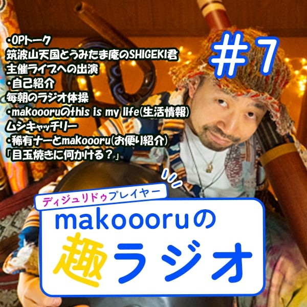 この番組は、ディジュリドゥ奏者のmakoooruがディジュリドゥの事や音楽の話だけでなく、大好きな料理やお酒、生活情報といったmakoooruが興味を持ったものを趣の向くままお届けしていく番組です。