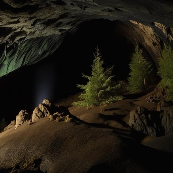 暗く冷たい洞窟に繋がる夜の森