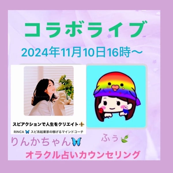 ❤️コラボLIVEゲスト❤️ RINCA(りんか)ちゃん🦋スピ系起業家コーチ💖 https://stand.fm/channels/62e3fa3b73ef6bc2492a96f5 🌸最後まで聴いてくださってありがとうございます🌸 いいね♡やコメントもいつもありがとうございます💖 ◆次回の【ラジオ保健室🌸】11月11日(月)15時〜(20分間) 【告知❶】 松原りえさん💖のホロスコープ&オラクル🔮 11月13日(水)14:00~15:00❤️ ✅松原りえさん💖のチャンネル✨ https://stand.fm/channels/667dffa8b3df4313861220a2 【告知❷】 川口社長🎽とホロスコープ&オラクル🔮 11月14日(木)16時~17時❤️ ✅ふぅ🍃のチャンネル ☀︎*.。○○❥¨̮❁*̣̩❅❥ 🔮オラクル&ホロスコープLIVEアーカイブ🔮 【アーカイブ❶】 同じ誕生日のふぅ🍃と麗❤️ が占う恋とインナーチャイルド🔮 https://stand.fm/episodes/672a396715d6d1fa589b0994 【アーカイブ❷】 言葉のファンタジスタまゆみん🩵 わたしの占いの魅力を見つけてもらえた🥹LIVE💖 https://stand.fm/episodes/6725d5074c7352055fb135d9 【アーカイブ❸】 キャピコかりん社長❤️ふぅの憧れの人🧚 https://stand.fm/episodes/672f1e4698870363ee6ac057 【アーカイブ❹】 なの❀ちゃん💖幸せLINEスタンプの人🕊 https://stand.fm/episodes/672f6a3198870363ee6ac665 【アーカイブ❺】 るー💖元キャバ嬢💖7店舗経営者💖 https://stand.fm/episodes/672f7ddc897047b894e4687b ☀︎*.。○○❥¨̮❁*̣̩❅❥ #レター募集中 #スピリチュアル ☀︎*.。○○❥¨̮❁*̣̩❅❥ ★ラッタさん🐸と「占いを始めたことについて」対談したスペース❤️よかったら聴いてね⟡.·*゚ https://x.com/ratta_tw/status/1760604185769418941?s ☀︎*.。○○❥¨̮❁*̣̩❅❥ #占い #オラクルカード #カウンセリング #健康 #コラボ配信 #告知 #コラボライブ #ふぅ🍃 #ふう🍃 #ふぅちゃん🍃 #ふうちゃん🍃 #ふぅ🍃占い保健室 #ふぅ🍃オラクル占いカウンセリング #リニューアル #よろしくお願いします #占い #健康 #カウンセラー #カウンセリング #レター募集中 #スピリチュアル #Kindle #占い保健室🌸 #ふぅのKindle🍃 #いっちーさん作曲のBGM🌈