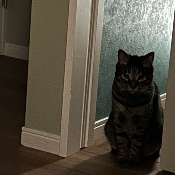 朝は猫ビンタで起こされています これは私の夜中のお手洗いが終わるのを待っている時の顔です #suno