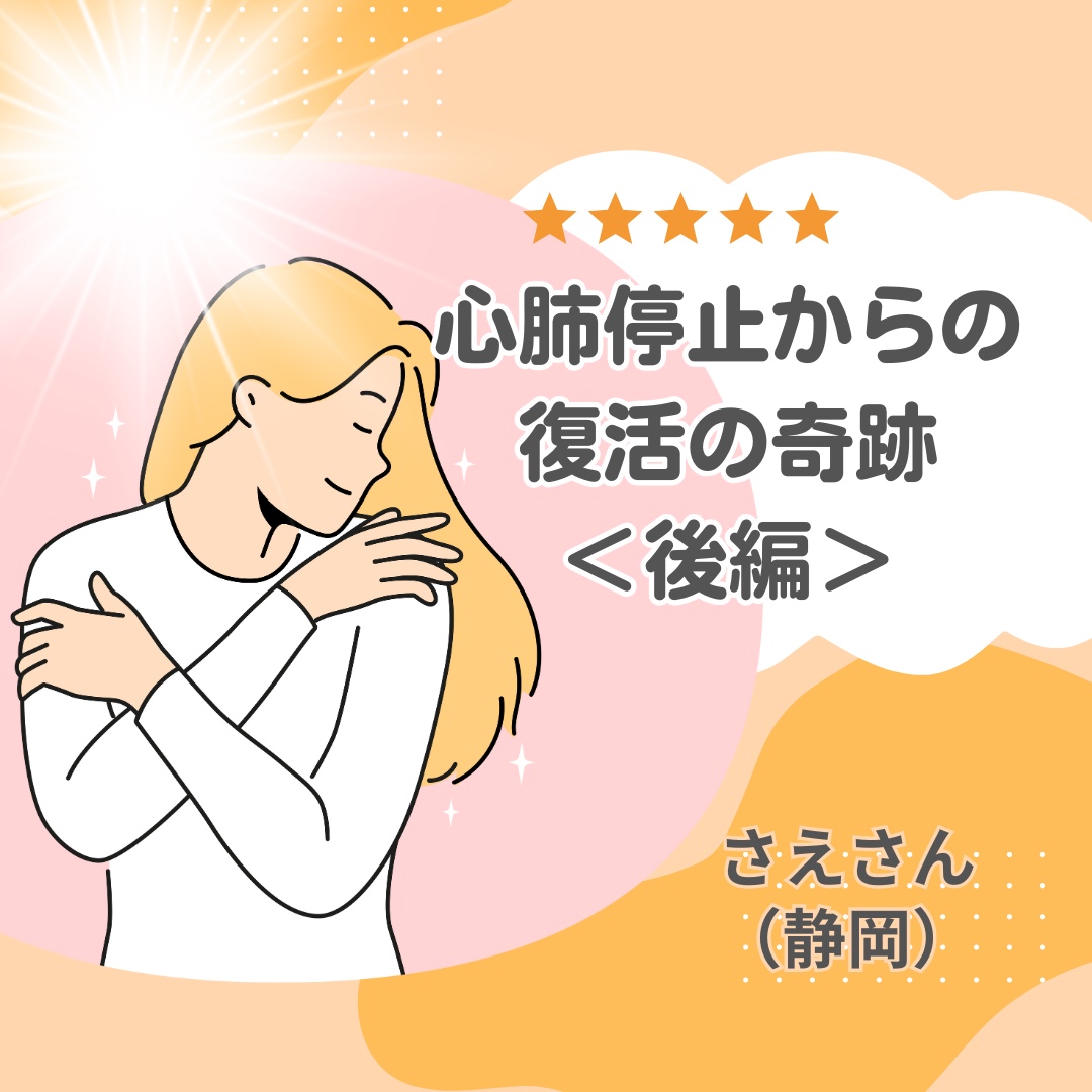 懸命な救急救命の措置のおかげで13分間の心肺停止の後、奇跡的に心臓が動き始めたさえさん。ただし、意識が戻らない。植物状態になるのを覚悟で、喉に人工呼吸器を繋ぐ同意を家族が行う直前、奇跡的に意識が戻り。。。
