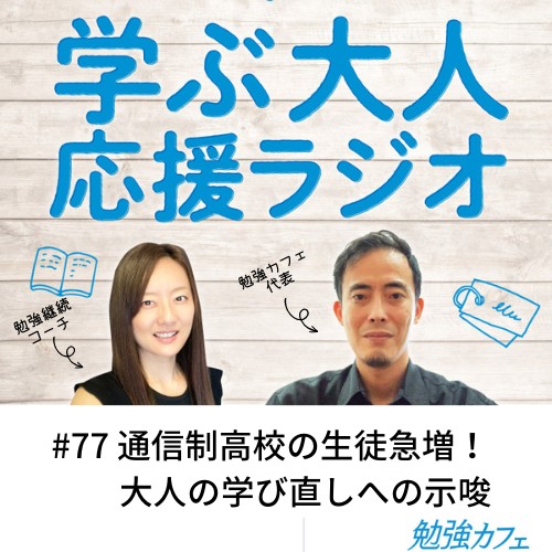 会員制勉強スペース「勉強カフェ」の公式ポッドキャスト、第77回配信では、最近の通信制高校の生徒増加という話題から、学ぶ大人への示唆ついて話をしてみました。ぜひお聞きください!