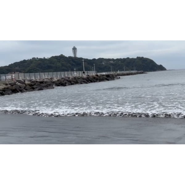 #江ノ島が遠くでボンヤリ寝てる