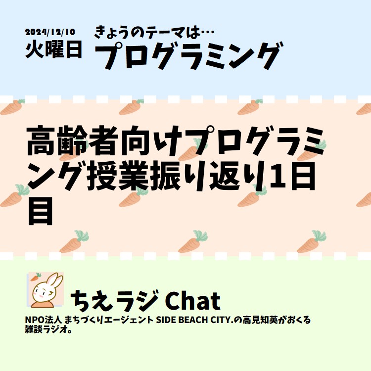 先日行った高齢者向けプログラミング授業の1日目の振り返りをしました。 #プログラミング #声日記 #ちえラジプログラミング - 老人福祉センター 横浜市泉寿荘