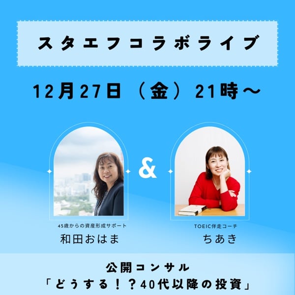 TOEIC伴走コーチのちあきさんをお迎えして、12月27日(金)の21時からスタエフライブを開催します。
