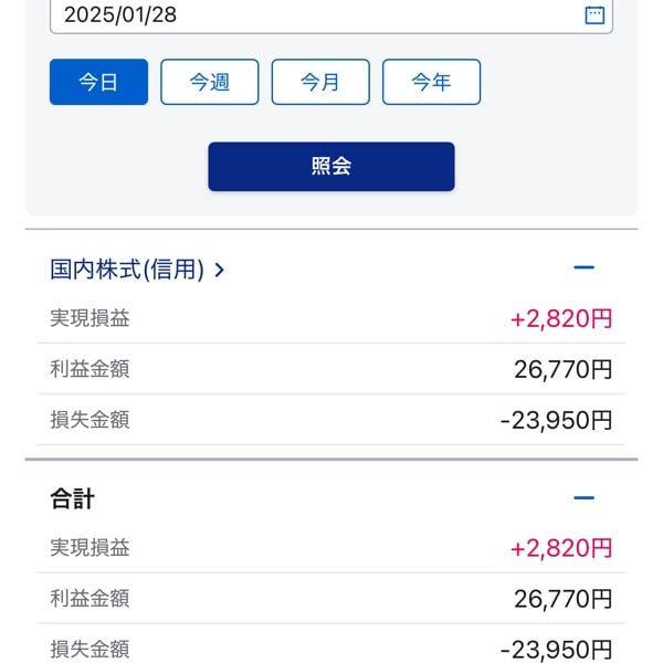 2025年1/28デイトレ 実現損益➕2820