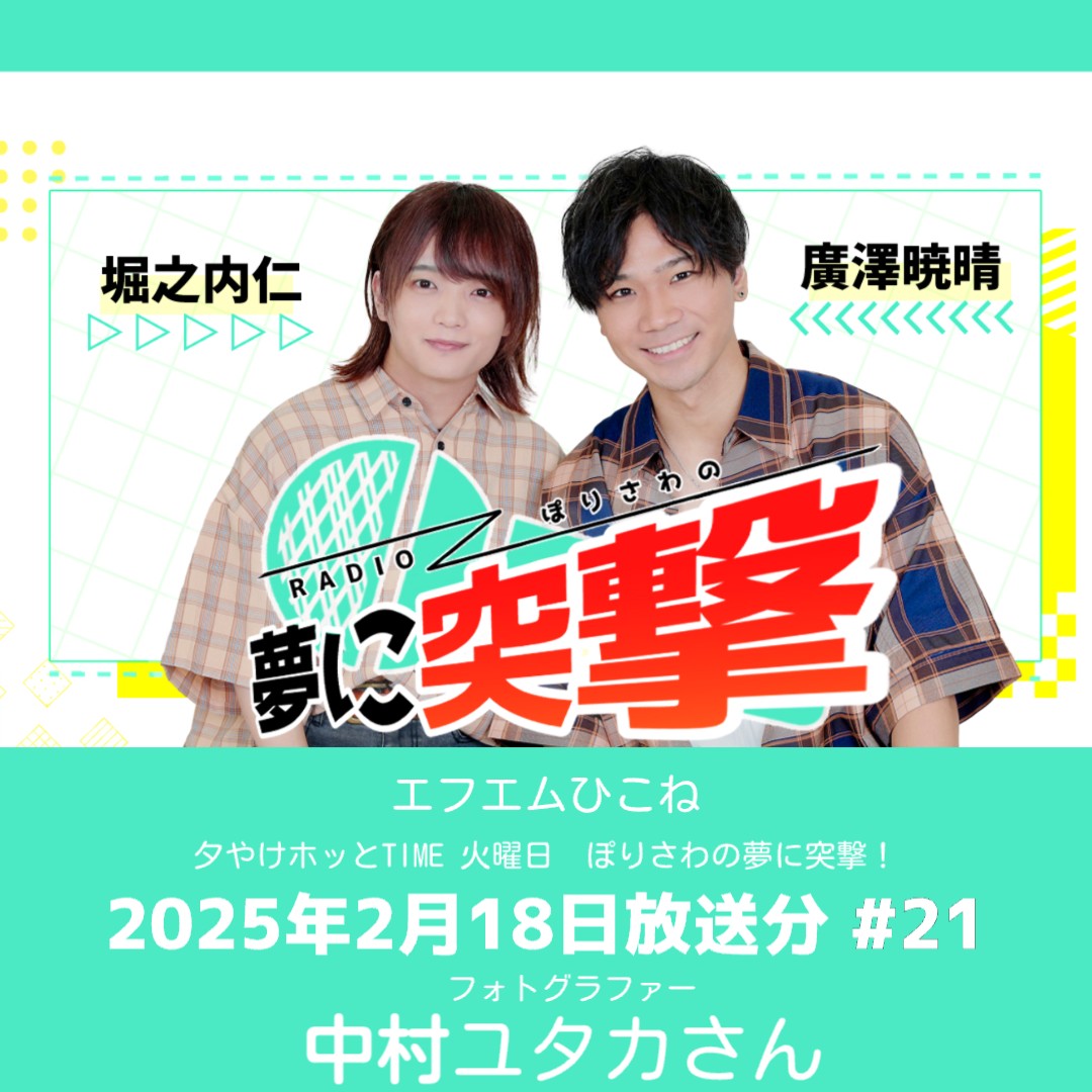 普段声優・俳優・ダンサー・モーションアクターとして活動している堀之内仁と廣澤暁晴が、夢を叶えた人、夢を追う人、様々な方にお話を伺い、夢を叶えるヒントを見つけていこう!という番組です。