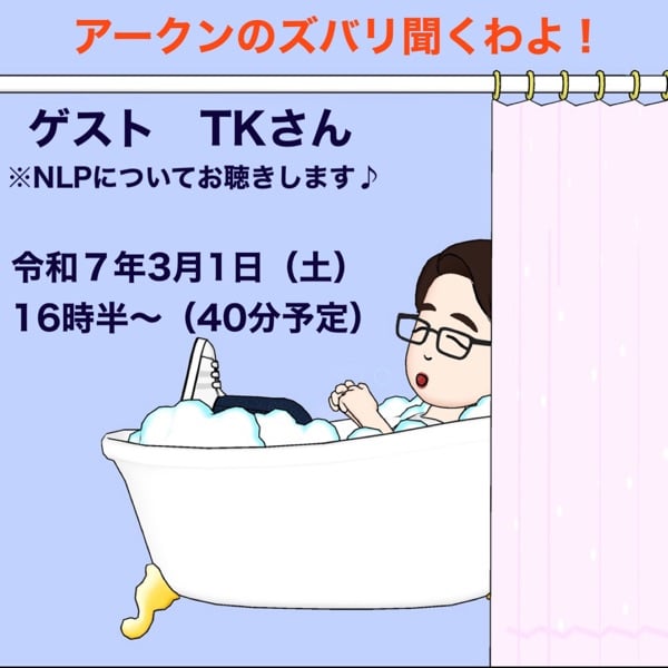 TKさんをゲストにお迎えして いろいろな楽しい話をお聴きしました。 NLPという実践心理学の話を聴いて、皆さんたくさんの発見があったように思います。 ・ネガティヴは克服しなくていい。 ポジティブとネガティヴのミルフィーユ。 ・失敗はない。フィードバックがあるだけ。 ・自分を俯瞰して見る。 ・プラスの言葉に変換 #TKさん #アークン #NLP