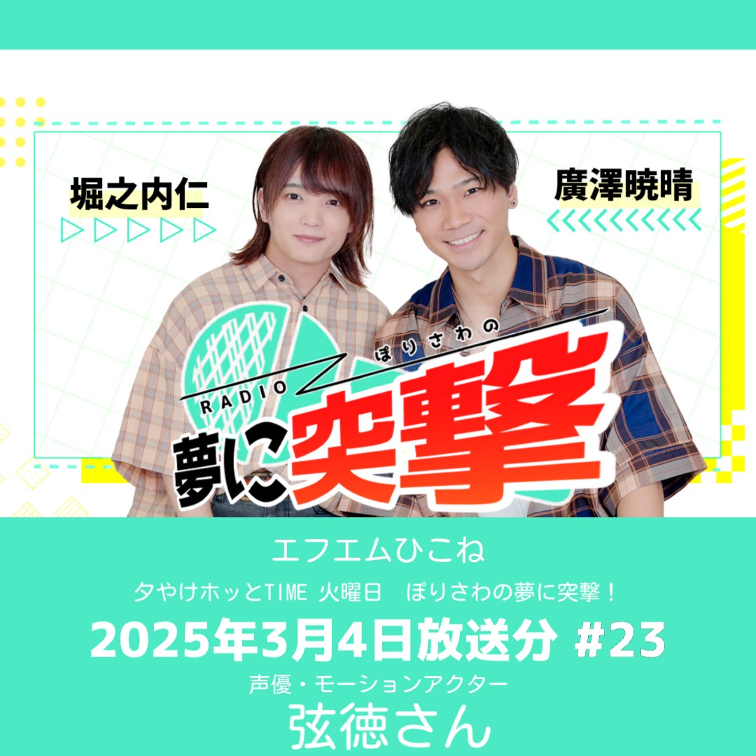 普段声優・俳優・ダンサー・モーションアクターとして活動している堀之内仁と廣澤暁晴が、夢を叶えた人、夢を追う人、様々な方にお話を伺い、夢を叶えるヒントを見つけていこう!という番組です。