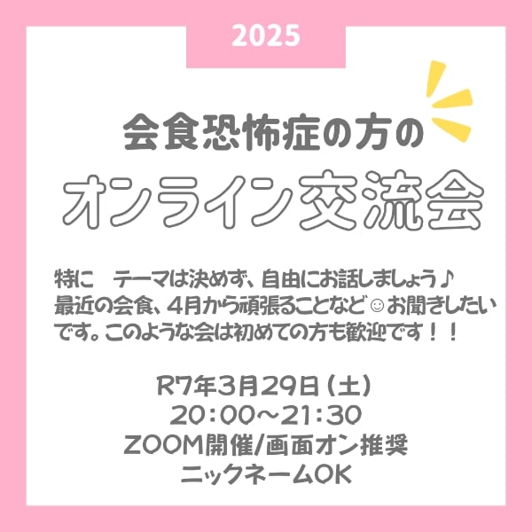 <会食恐怖症の方の オンライン交流会>