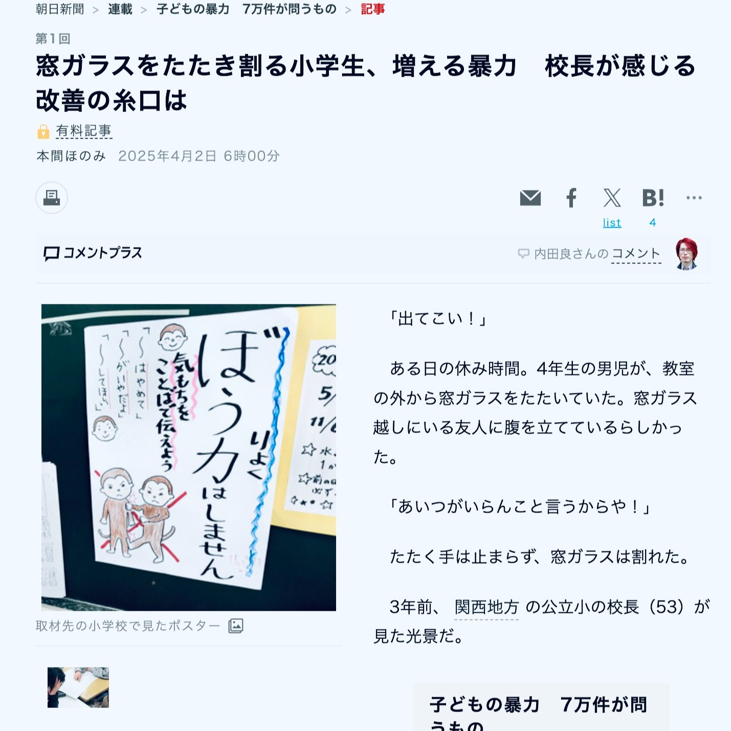 ・この記事の見出しとここまで無料を読んで想起したことは、1980年代の「校内暴力」だった。
