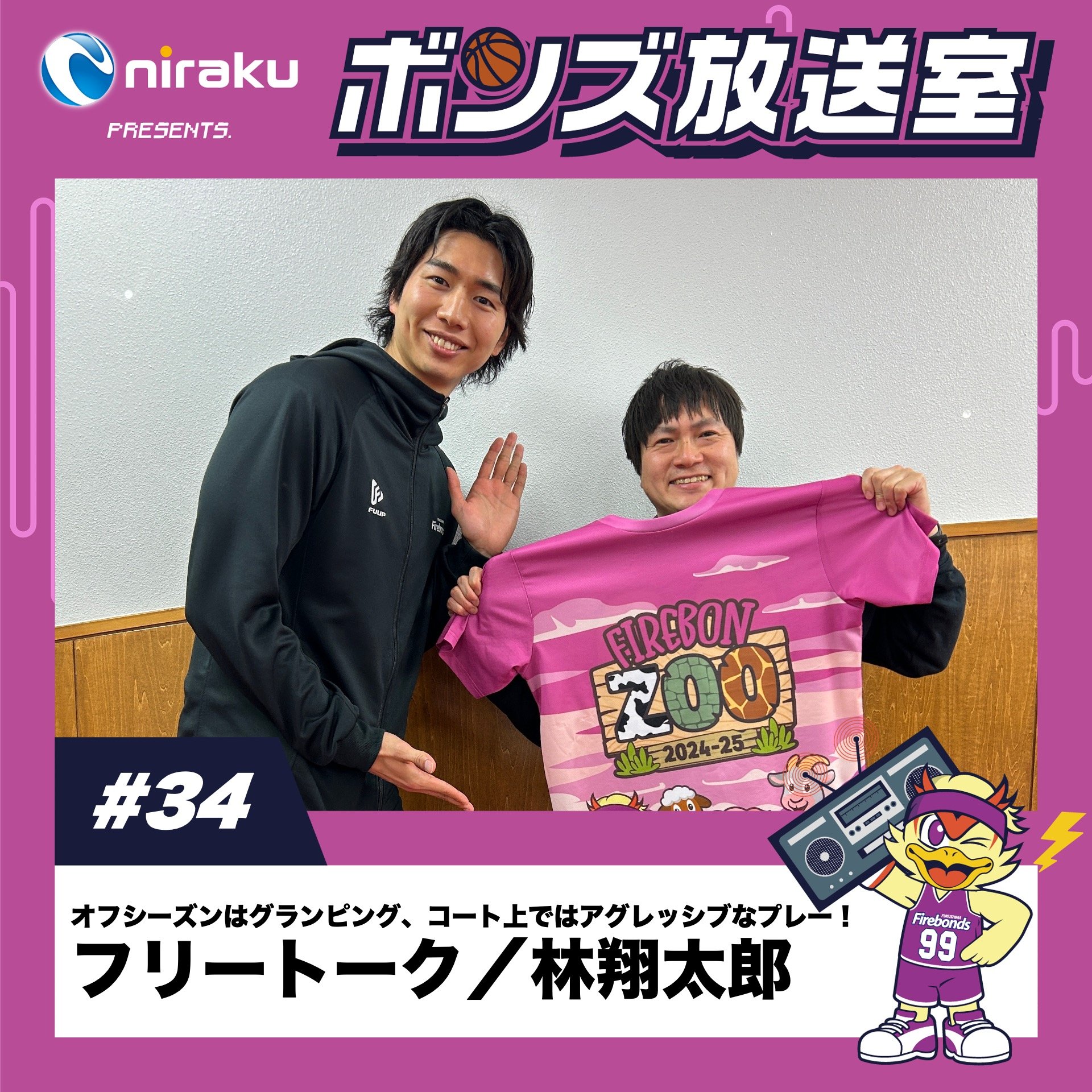 ◤ 二ラクPRESENTS. #ボンズ放送室 ◢ オフシーズンはワン選手とグランピング!? 広報Youtube撮影に同行します🏕笑 そして宝来屋ボンズアリーナオープニングゲームに向けて、よりアグレッシブなプレーをすると決意してくれた林選手でした! 【出演】 MCテディ 林翔太郎 #福島ファイヤーボンズ #firebonds #Bリーグ #バスケットボール