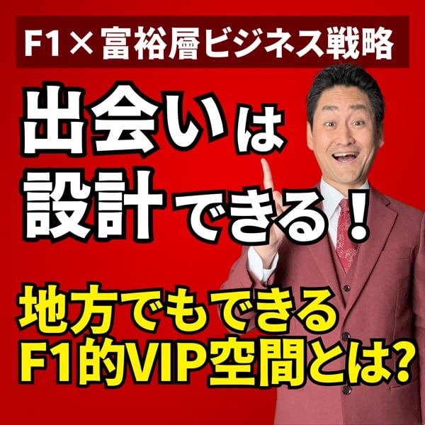 F1は富裕層が自然に集まる“ビジネスの舞台”。中間層が減少する今、重要なのは「誰に出会いたいか」を明確にし、その出会いを設計すること。F1的空間づくりを通じて、地方でも可能な富裕層戦略と体験設計のヒントを語ります。
