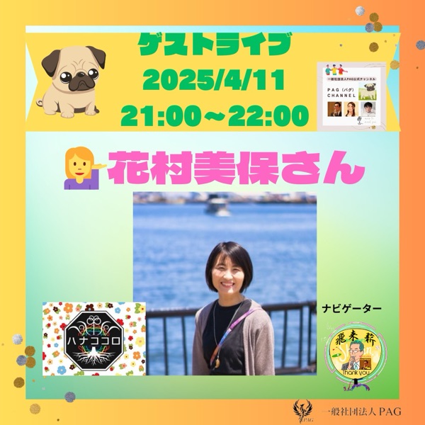 【告知】⏰今夜21:00〜🐶PAGチャンネルライブ💁‍♀️ゲスト花村美保さん🌺