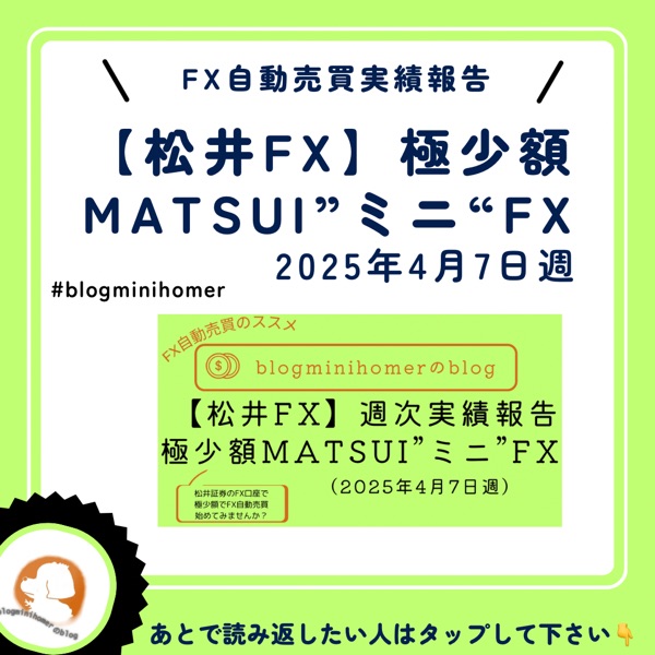 松井証券FXの極少額自動売買設定「MATSUIミニFX」の実績を報告していきます。