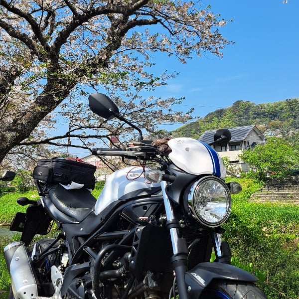 写真は伊豆に行った時、SV650 #おばあちゃんの知恵 #春 #日焼け止め #日焼け対策 ←昔は長袖きてる人暑いのに!と見てたけど長袖必須だわ!