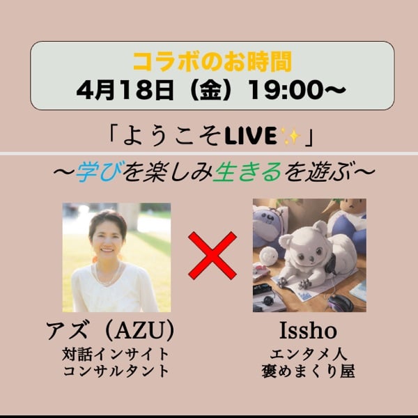 「ようこそLIVE〜学びを楽しみ生きるを遊ぶ〜」ゲスト:アズさん