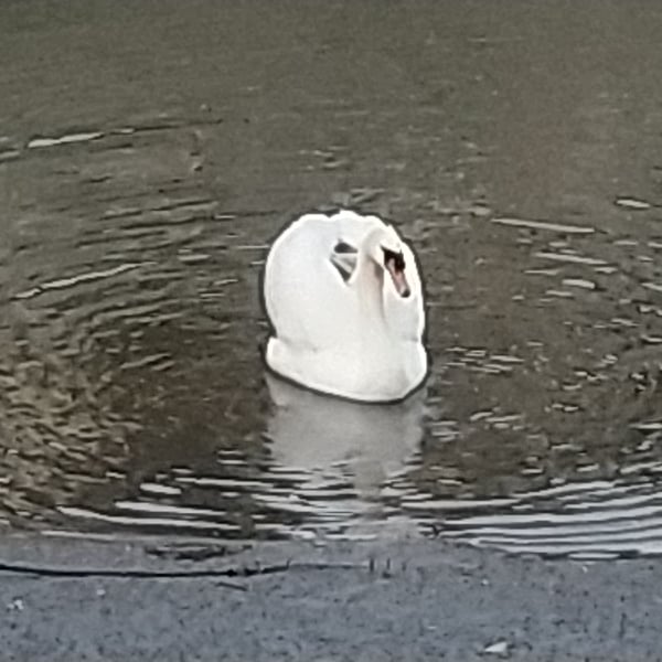 河口近くの川辺りを歩いていたら、白鳥が目の前の水面にに舞い降りて来たので、ズームして撮りました。