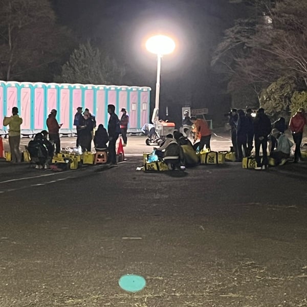 22時から麓サポート設置してます🫡 人数分ビブはありませんのでエリアの外で待機してます。 しかし上位陣の走りは凄いですね🤗
