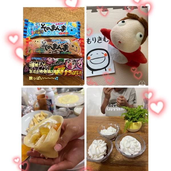 孫達と私が作ったココアゼリーに生クリームホイップスプレー缶でデコって朝から美味しいデザートの後のガムのゲーム🚩🚩🚩