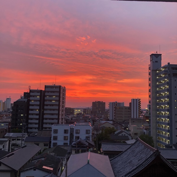 画像は今日、仕事から帰宅した時のベランダからの夕焼け。