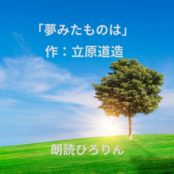 📖立原道造さん作「夢みたものは」 わずか24歳8か月で急逝された立原道造さんが愛と幸福を美しく描いた抒情詩です。 ★青空文庫『優しき歌』より「夢みたものは」 https://www.aozora.gr.jp/cards/000011/files/899_27483.html ♫使用BGM「甘茶の音楽工房」https://amachamusic.chagasi.com/ #立原道造 #夢みたものは #青空文庫 #声優 #朗読 #詩の朗読