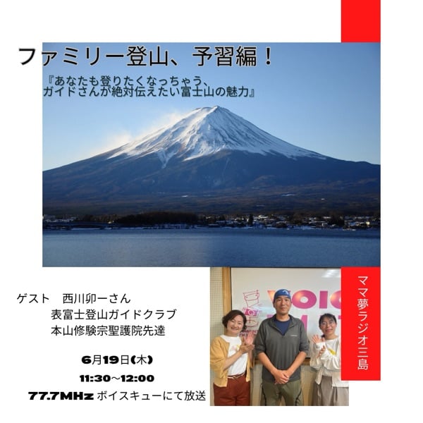 をテーマに富士山ガイドの西川卯ーさんをゲストにお招きして富士登山の魅力やポイントをたっぷり伺いました。
