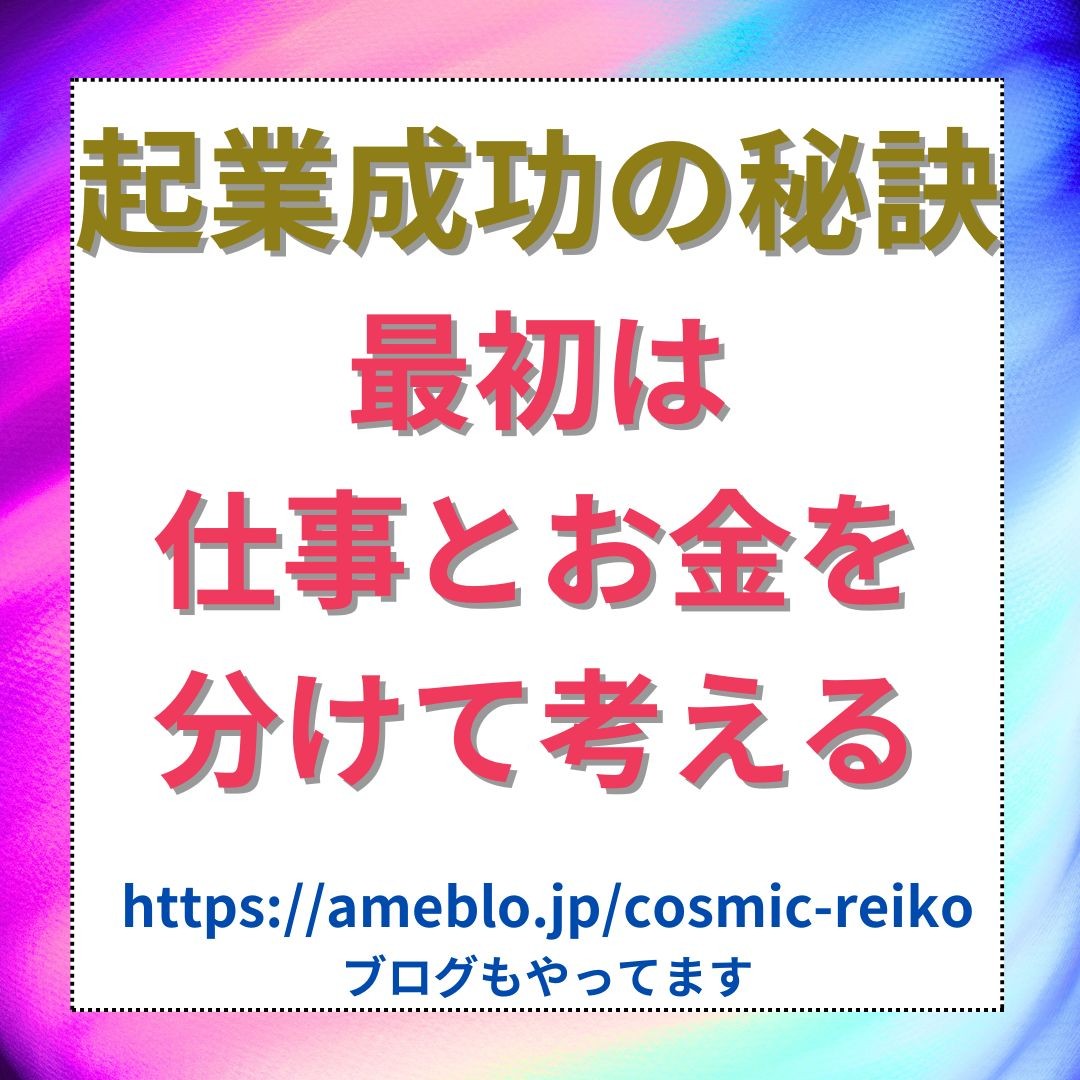 「幸せな起業」で成功する秘訣第2弾。「仕事とお金」を分けて考える。