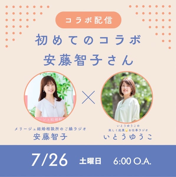 いつも聞いていただきありがとうございます!今日は公開が遅くなりましたが、コラボ収録したものを配信します✨ stand.fmやったことない人がどんどんデビューしてくれて嬉しい限り🥰 01:34 本編 安藤智子@メリージュ結婚相談所のご縁ラジオ 智子さんの初ライブはこちら😆 https://stand.fm/episodes/686b57c517d98d8c57544aa7 #コラボ収録  #コラボ