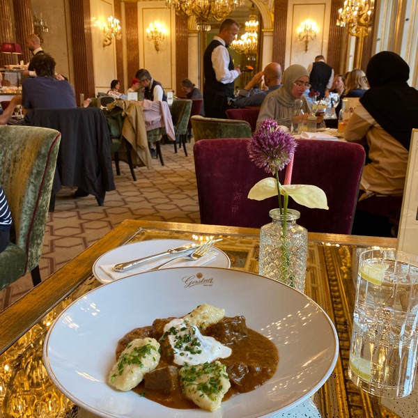 宮廷晩餐会の料理も作っていたカフェ『ゲルシュトナー』 カフェ自体が芸術的で空間に入れるだけで嬉しい気分になる 牛肉のグラーシュとケーキ🍰最高😀ただお値段は6000円