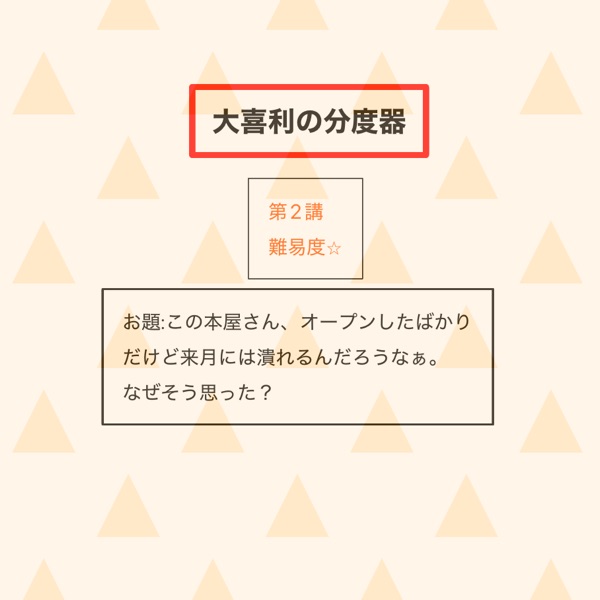 第2回お題: この本屋さん、オープンしたばかりだけど来月には潰れるんだろうなぁ。なぜそう思った?