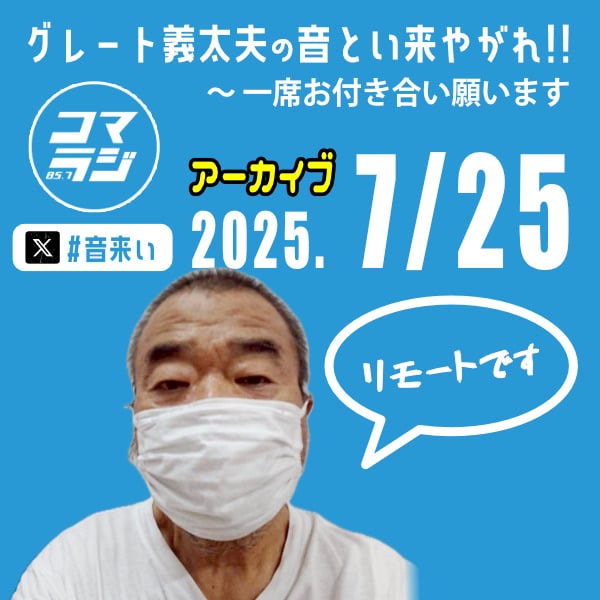この音声は、毎週金曜日18時からコマラジ(狛江エフエム・コミュニティーFM 85.2Mhz)でオンエアされた番組「グレート義太夫の音とい来やがれ‼︎〜一席お付き合い願います!」の音声を著作権の関係で配信できない部分(楽曲など)を除いてアーカイブとしてお届けしています 。 #グレート義太夫 #コマラジ #アーカイブ #たけし軍団