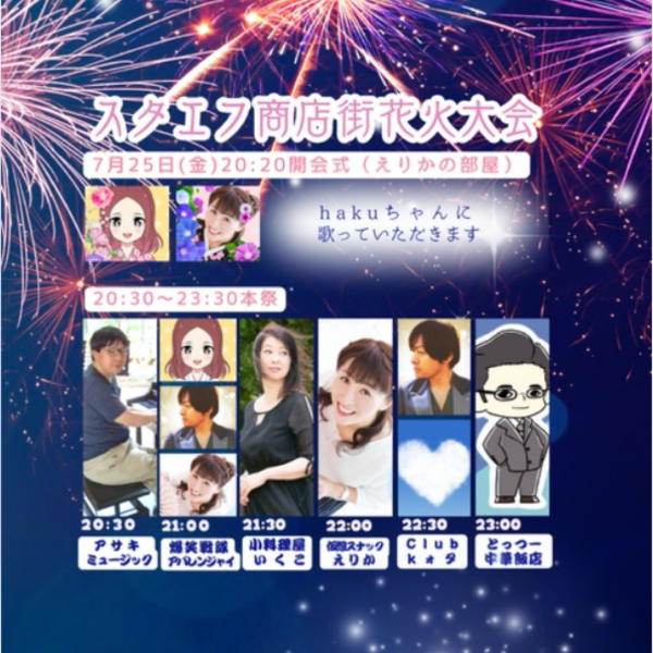 7月26日(土)昨日はスタエフ商店街花火大会に参加ありがとうございました。🙇‍♂️