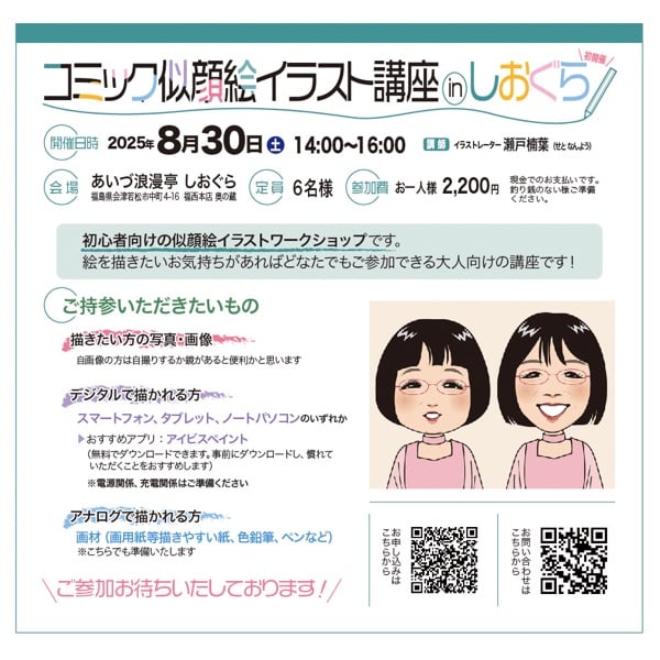 『コミック似顔絵イラスト講座inしおぐら』