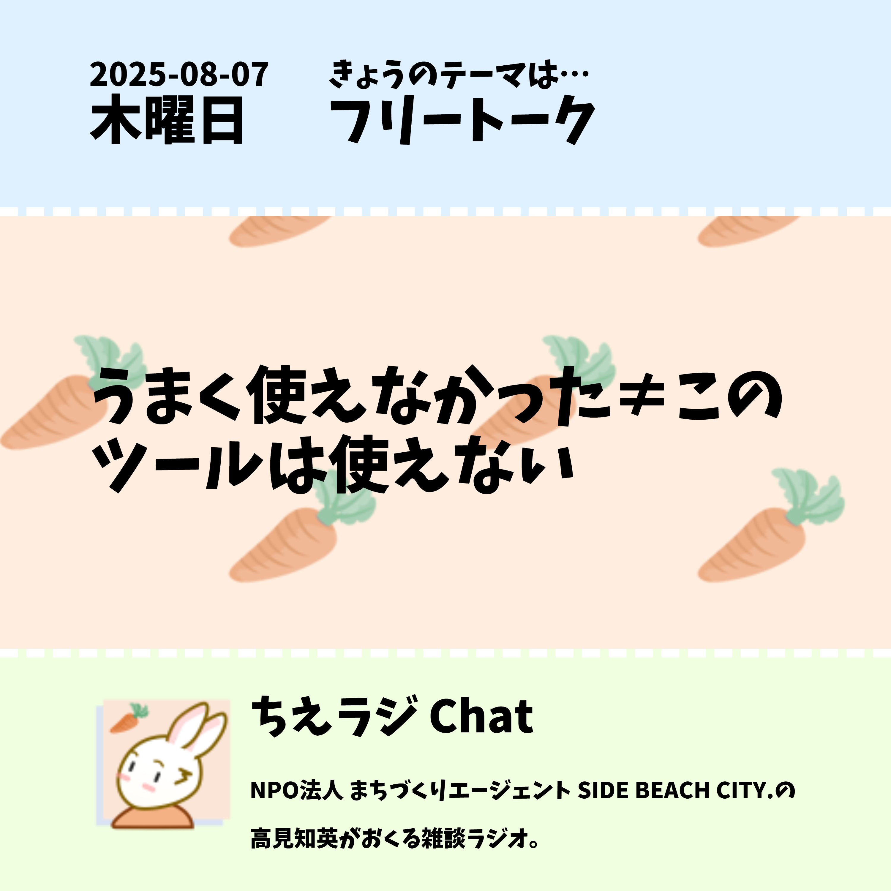 複数人で使うようなWebサービスの入力フォームを渡されて、このツールを使いづらいなって思った時は、=そのツールが自分に合ってないんだと決めつけないでほしいなあと思った話をしました。 #声日記 #ちえラジフリートーク