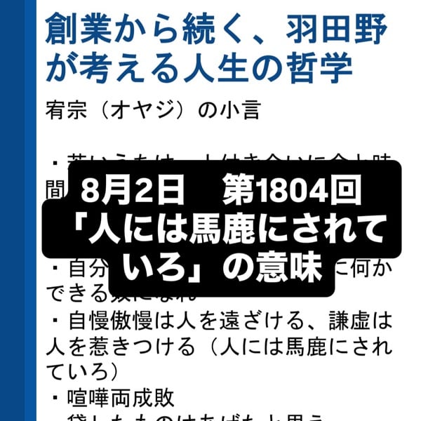 8月2日 第1804回 「人には馬鹿にされていろ」の意味
