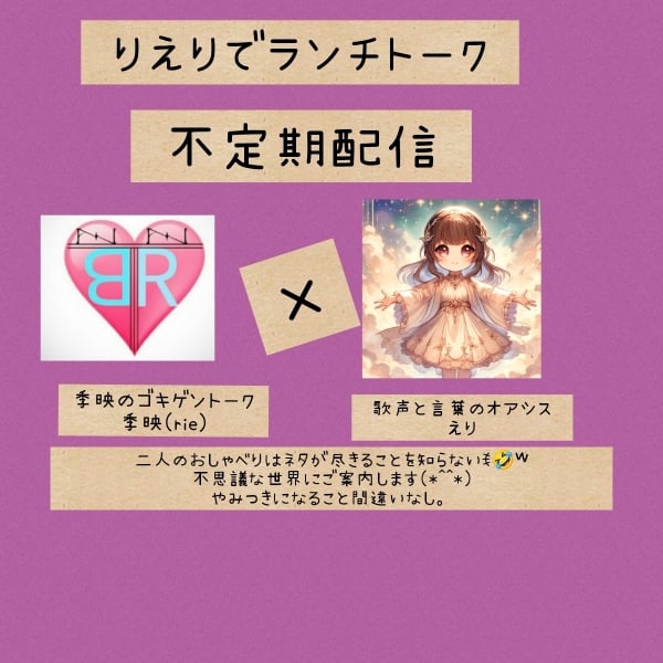 今月8月初めて、りえりやりました😊 配信に来てくださった方、ありがとうございました!(´▽`) 今後も不定期ですが、りえりやっていきたいとおもってますのでよろしくお願いします。 #りえりでランチトーク #雑談