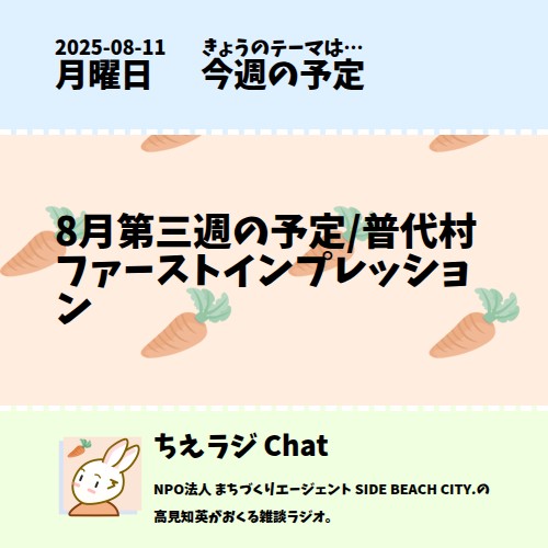 8月第三週の予定/普代村ファーストインプレッション