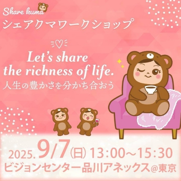 シェアクマに参加を決めた心境などを話してみました。 募集は本日(8月14日)までです。 シェアクマワークショップ 【内容】豊かさを分かち合うワークショップ 【日時】9月7日(日)