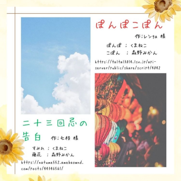 主に朗読・声劇が出来ればと思っております!