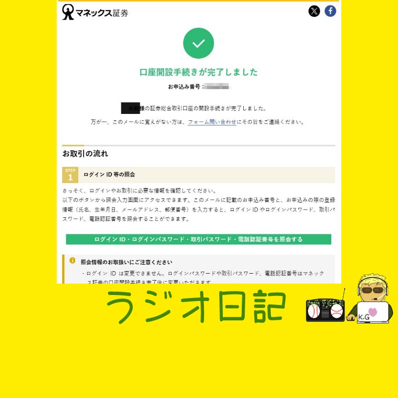 本日はドジャース戦はお休みなので、ラジオ日記を放送します。 今年は別の証券会社でNISAを利用していたのですが、そこの証券会社は、日本株のみしかなく、NISAを利用する機会がなかったので、マネックス証券で改めてNISAをはじめようと思い、口座開設をしました。 口座開設までの流れをざっくりお話します。
