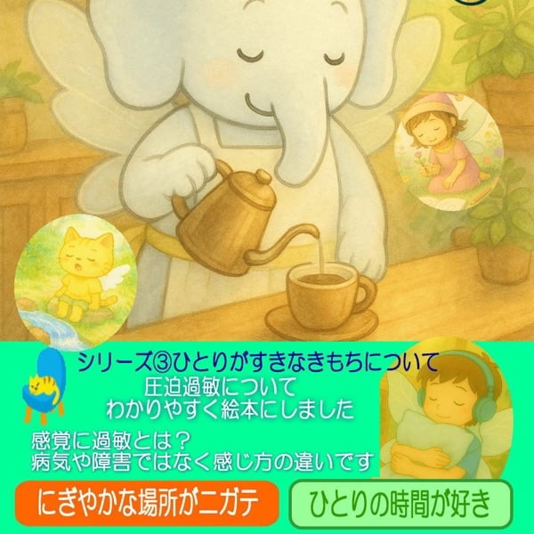 以下は、障害とまでも行かなくても、感じ方の違いを絵本にして、広く知っていただけたらと、感覚過敏の絵本をつくりました。