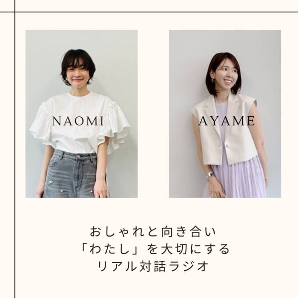 STORY認定パーソナルスタイリストであるnaomi&ayameが⾃⾝の体験を通じ「おしゃれ」と向き合い、“私”を⼤切にするリアル対話ラジオ。 毎日、仕事に家事に育児に忙しい全ての女性がおしゃれを楽しむためのヒントを、リアルな視点でゆるっとお届けしていきます。 リスナーの方とおしゃべりしているようなラジオにしていきたいと思っています!