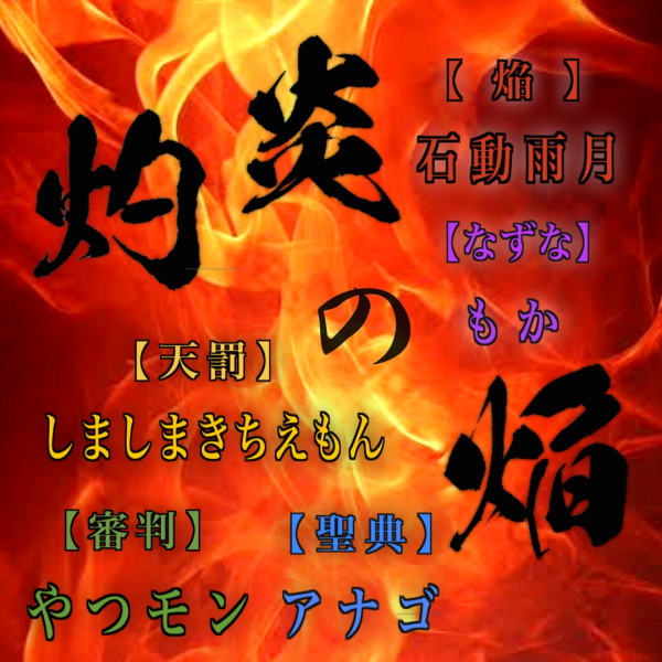 配役 【焔】石動雨月さん 【なずな】もか@ただのうさぎさん 【審判】やつモン 【天罰】しましまきちえもんさん 【聖典】アナゴさん