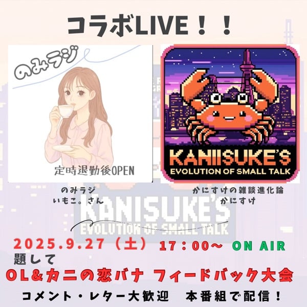 9月27日(土)17時00分からかにすけの番組で配信!