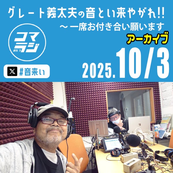 この音声は、毎週金曜日18時からコマラジ(狛江エフエム・コミュニティーFM 85.2Mhz)でオンエアされた番組「グレート義太夫の音とい来やがれ‼︎〜一席お付き合い願います!」の音声を著作権の関係で配信できない部分(楽曲など)を除いてアーカイブとしてお届けしています 。 #グレート義太夫 #コマラジ #アーカイブ #たけし軍団