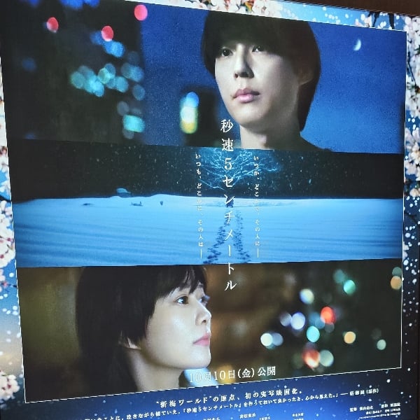 10月10日(金)公開の「秒速5センチメートル」の話をしました。 劇場用実写映画『秒速5センチメートル』予告2
