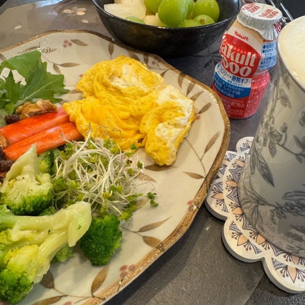 朝ごはん 彩りよくて バランスも良さそう💚😊 ストレスかからないように うま~~~く自分時間を 楽しむのがいいデスね(*^^*)💛 音声の中に 時々 ボワ~~~ンって音が 気になりましたが こなんだけかな🤔